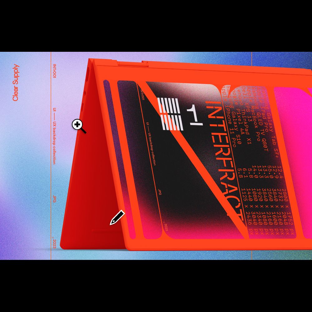 Hold on a sec. INTr002 (INTERFRACT 002) is a collection of 18 backdrops specifically designed for UI / screen design use (website backdrops, social media, element masking). Crop & scale the material to use one visual in multiple contexts. Throw it into your resource archive to have a set of backgrounds ready to go when working on a fresh concept. INTr002 features 18 JPG soft backgrounds at 2800x4200px.