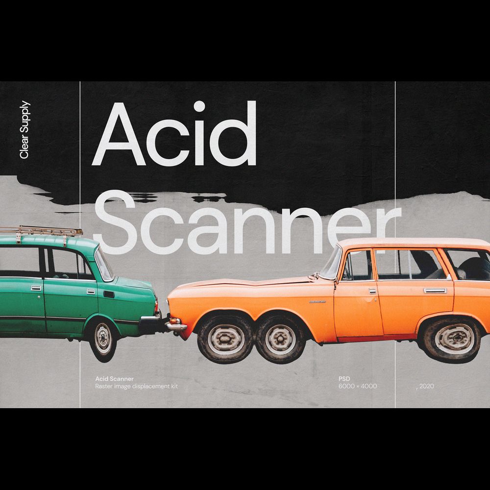 Oh Yoshimi, don't let those robots eat me. Acid Scanner is a collection of 60 custom rendered Photoshop PSD displacement maps. Using the kit is easy - simply select your layer and choose the Displacement Map effect (Filter > Distort > Displace). The collection is suitable for both screen and print.